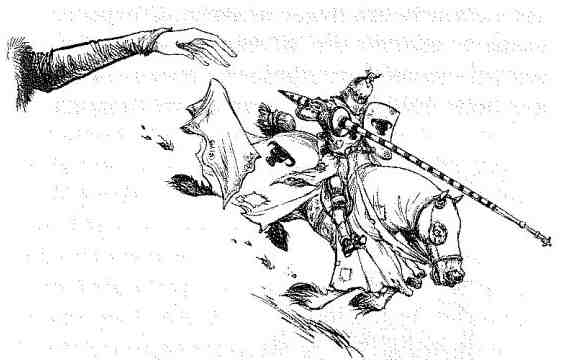 На третий день поединки стали намного трудней. Теперь из рук прекрасной дамы на арену упал золотистый платок, и турнир начался под этим знаком.