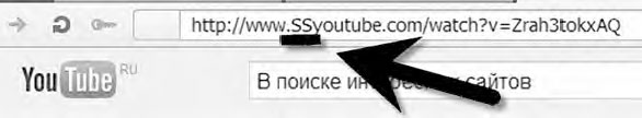 Для того чтобы скачать ролик с YouTube в адресной строке на странице, где размещён ролик, добавляем в адрес страницы две буквы (SS), как показано ниже, и кликаем на клавиатуре кнопку «ENTER».