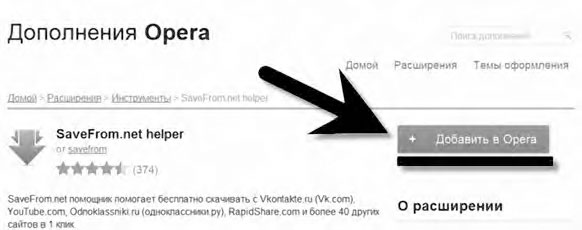 Добавляем расширение «SaveFrom.net помощник» в браузер Opera.