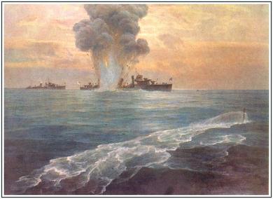 Подводная лодка АГ-16, получив целеуказания от гидропланов, шла в надводном положении к месту предполагаемого нахождения английской эскадры. У командира лодки лейтенанта Бахтина не было сомнений, топить или не топить корабли под флагом страны, формально не ведущей с Россией войны. Ночной налет на Лианкур англичан (а взятые пленные не оставляли сомнений в их причастности к нападению), гибель "Олега" и "Двины" означали, что пакостившие до этого по мелочам британцы стали отныне открытыми врагами, объявлена война или нет.