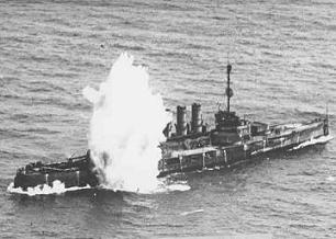 В свою очередь все три русских линейных крейсера направили огонь главного калибра на "Сацуму". Японский броненосец совсем скрылся в гуще непрерывно встающих вокруг него водяных столбов, в клубах дыма от рвущихся снарядов. Корабли быстро сближались на встречных курсах, поэтому старшие артиллерийские офицеры в центральных командных постах уже не трогали управление углом возвышения орудий (стрельба велась прямой наводкой), а непрерывно меняли курсовые углы наведения на цель, поворачивая башни за проходящим по правому борту с носа на корму вражеским броненосцу. За десять минут максимального сближения русские дредноуты выпустили каждый из "измаилов" выпустил по двадцать четырехорудийных залпов. Из двухсот сорока выпущенных по "Сацуме" крупнокалиберных снарядов (ста восьмидесяти фугасных и пятидесяти бронебойных) около десятка попало в цель, причинив японскому линкору повреждения, несовместимые с дальнейшим надводным существованием. Быстро потопить даже из 356-мм орудий огромный двадцатитысячетонный броненосец, сопоставимый размерами с дредноутом, было непросто. Однако каждое попадание производило огромные разрушения. Если снаряд проникал в корпус, было видно, как из глубины корабля вспыхивают отблески взрывов и разгораются пожары. Первые минуты встречного боя русские продолжали стрелять фугасами, составлявшими 3/4 боекомплекта "измаилов". Фугасные снаряды разбивали вдребезги надстройки броненосца, снесли мачты и трубы, исковеркали надводный борт, вызывали масштабные пожары, но не могли нанести вражескому линкору фатальных повреждений. Потом из погребов стали поднимать бронебойные снаряды... Проникая, пробивая броню, глубоко внутрь корабля, они не вызывали такого поразительного видимого эффекта, как рвущиеся снаружи фугасные снаряды, но их попадания были гораздо более губительными.