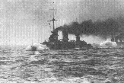 Конечно, японский 674-кг снаряд в был гораздо мощнее, чем 471 кг стали и взрывчатки русского снаряда. Однако русские могли компенсировать разницу большим количеством орудий и их лучшей скорострельностью. Каждый русский дредноут вел огонь из двенадцати орудий главного калибра, тогда как у японского линейного крейсера их было восемь, а трехорудийные русские башни на каждые два залпа двухорудийных японских давали три свои, выпуская за одинаковое время в полтора раза больше снарядов! Бой шел на большой дистанции, и прямых попаданий было немного, но противника стреляли друг в друга не бронебойными снарядами, а фугасами, которые рвали осколками высокобортные оконечности японских кораблей, не имевшие броневой защиты, тогда как у русских линкоров весь низкий борт был прикрыт противоосколочной броней. Нельзя было забывать и русской централизованной системе управления огнем, отсутствовавшей у японцев. Это давало серьезное преимущество в точности стрельбы