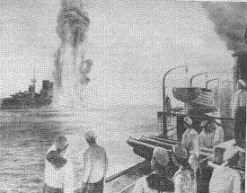 На эсминце настала тишина, даже артиллерийские расчеты отошли от своих орудий. Все всматриваясь в гигантский корабль впереди, не веря, что даже девять выпущенных торпед способны причинить ему какой-то ущерб. Потом все дружно грянули "ура!", и громче всех кричал товарищ Раскольников, забыв о том, что обрек на смерть несколько сотен японских рабочих и крестьян в матросских бушлатах. Прямо посередине силуэта "Хиэя" поднимались выше мачт бурые столбы от подводных взрывов.