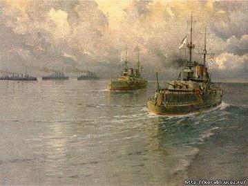 Постепенно, по мере возвращения минных дивизионов, вокруг идущих медленным ходом "Севастополя", "Гангута", "Николая I", "Александра III" и "Афона" выстраивался охранный ордер из легких крейсеров и эсминцев. Впереди шли фронтом "Адмирал Нахимов" и "Адмирал Корнилов", в арьергарде - "Адмирал Грейг" и "Адмирал Бутаков". С правого траверза линию больших кораблей прикрывали капитан 1-го ранга Белли со своим дивизионом из четырех новейших балтийских эсминцев и капитан 1-го ранга Вилькицкий с шестью эсминцами-"ушаковцами". На левом траверсе шли оставшиеся балтийские эсминцы из разных дивизионов под общим началом капитана 1-го ранга фон Гельмерсена. Под охраной пяти крейсеров-"светлан" и девятнадцати эсминцев-"новиков", способных встретить атаку вражеских миноносцев плотным заградительным огнем можно было чувствовать себя более-менее уверенно. Не удовлетворяясь одним этим, Колчак несколько раз менял курс эскадры, чтобы сбить противника со следа. Остерегаясь сразу идти на север, где его наверняка поджидал неприятель, русский адмирал направил корабли на запад, к Корее. Похоже, что уловка удалась. Радиоэфир был наполнен переговорами японских миноносцев, но новых атак пока не происходило.