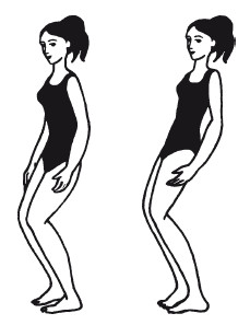 ИП – стоя, ноги на ширине плеч, слегка согнуты, руки на бедрах. Выдвинуть таз вперед, напрягая при этом ягодицы.