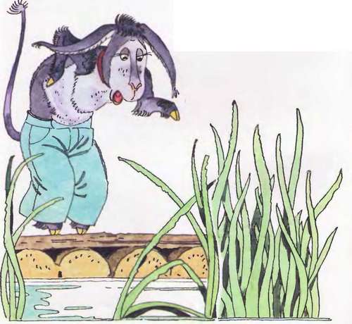 — Привет! — крикнул Селезень и подплыл к берегу. — Не хочешь ли поплавать? — махнул он крылом, приглашая Ослика в пруд.