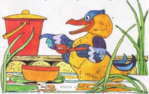Селезень сбросил с большого ведра крышку и, гордо выпятив грудь, сказал: