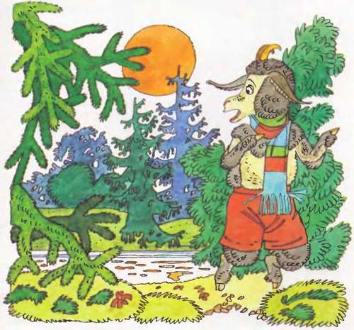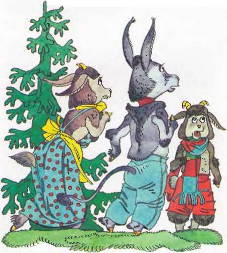 Солнце скрылось за верхушками елей. На лес опустились сумерки. Давно пора было возвращаться домой. Но Ослик, Козочка и Барашек шли и шли вперёд, не теряя надежды найти счастье.