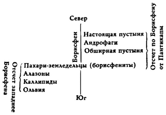 Геродот дважды говорит о том, что севернее, выше земли борисфенитов по течению Днепра, находится пустыня (§§ 18 и 53). Эти сведения Геродота хорошо согласуются как с географической, так и с археологической картой Среднего и Верхнего Поднепровья.