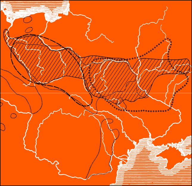 Легендарные события приурочены, очевидно, к «Исконной Скифии», простиравшейся от Дуная до Каркинитиды. Где-то в середине этой полосы у Днестра погибли киммерийские цари. Вполне возможно, что легенда отражает первичное расселение скифских и родственных им племен в VII в. до н. э. после истребления киммерийцев. Одни племена двинулись далее на запад к Карпатам, где покорили изнеженных фракийцев и восприняли многое из их культуры (агафирский союз) [200] , другие (гелонский союз племен) двинулись на север, в днепровское Левобережье, подчиняя себе как туземное население протобалтского (?) облика, будинов, так и недавно переселившихся сюда с правого берега борисфенитов по Ворскле-Пантикапе. Собственно скифы остались в Причерноморье и Приазовье. В какое-то время (VI–V вв. до н. э.) часть скифов отделилась от царских и откочевала на Дон.