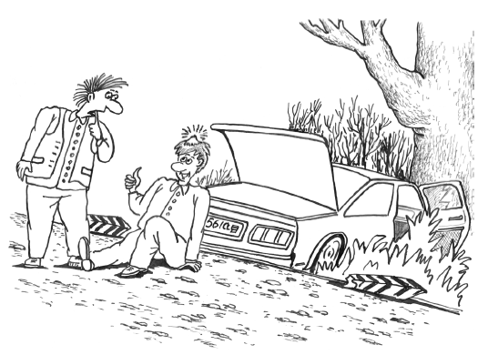 В городских условиях или на трассе, когда по обочине идут люди, единственный способ снизить финансовые потери – врезаться в грузовик. Грузовой автомобиль – штука крепкая, а потому ремонт ограничится восстановлением своей собственной машины. С самим собой вы как-нибудь договоритесь без всяких судов и судебных исполнителей. Нет грузовиков – биться следует в ВАЗы или УАЗы – они дешевле. Можно, конечно, останавливаться «об столб». Но в старых кварталах столбы, увы, стоят уже на тротуаре, и, врезаясь в них, вы рискуете тем, что кого-то из пешеходов все-таки заденете. А в новых, с широкими газонами – проще выскочить на газон и вспахивать его, пока не остановитесь. Самое главное – всегда пристегиваться ремнем безопасности.