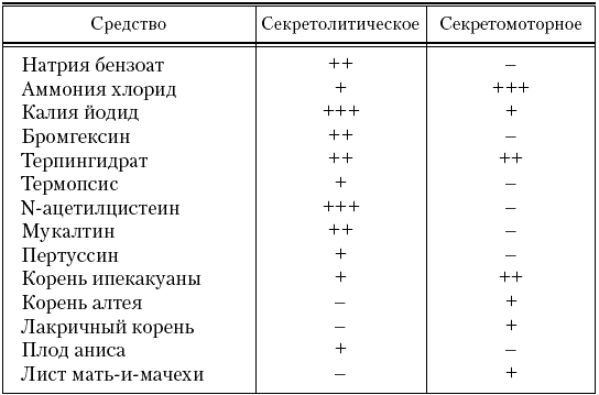 Наиболее часто используют следующие отхаркивающие средства: микстура из алтейного корня с добавлением натрия бензоата, нашатырно-анисовых капель, назначают по 1 чайной или 1 столовой ложке (в зависимости от возраста) 4 раза в день; мукалтин – препарат из травы алтея лекарственного (таблетки по 0,05 г), назначают по 1/2–1 таблетке 3–4 раза в день (таблетку можно растворить в 1/3 стакана теплой воды, добавить сахарный сироп); грудной эликсир (лакричный) – в его состав входят корень солодки, раствор аммиака, анисовое масло, назначают столько капель на прием, сколько лет ребенку, 3–4 раза в день; бромгексин (таблетки по 0,004 г) – по 1/4–1/2–1 таблетке 3 раза в день; амброксол – метаболит бромгексина, обладает выраженным отхаркивающим действием, разжижает мокроту, увеличивает содержание сурфоктанта в легких за счет увеличения его синтеза (таблетки по 30 мг), назначается детям до 2 лет – по 7,5 мг 2 раза в день, 2–5 лет – 7,5 мг 3 раза в день, 5–12 лет – 15 мг, старше 12 лет – 30 мг 2 раза в день; амбробене (амброксол) – капсулы ретард 75 мг, назначают детям старше 12 лет – по 1 капсуле в день, сироп 15 мг/5 мл – детям до 2 лет – по 2,5 мл 2 раза в сутки, 2–5 лет – 3 раза в сутки, 5–12 лет – 5 мл 2–3 раза в сутки, старше 12 лет – 10 мл 2 раза в сутки; N-ацетилцистеин (мукосольван) применяют для аэрозольных ингаляций и для приема внутрь в дозе 100–200 мг 3–4 раза в день.