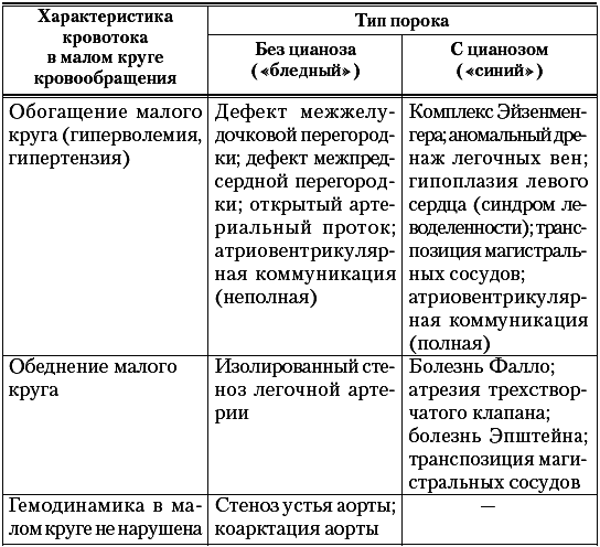 Наибольшее значение для топической диагностики ВПС и правильного подхода к их лечению имеет классификация Мардера, построенная по клинико-рентгенологическому принципу, в основу которого положена характеристика кровотока в легких (табл. 17).