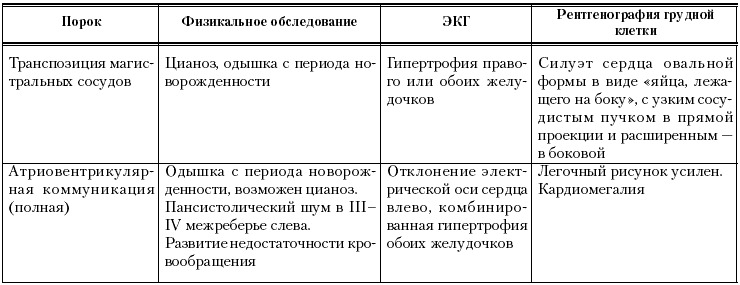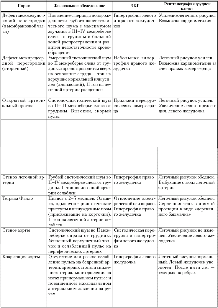 Характерные симптомы наиболее распространенных ВПС представлены в табл. 18.Таблица 18