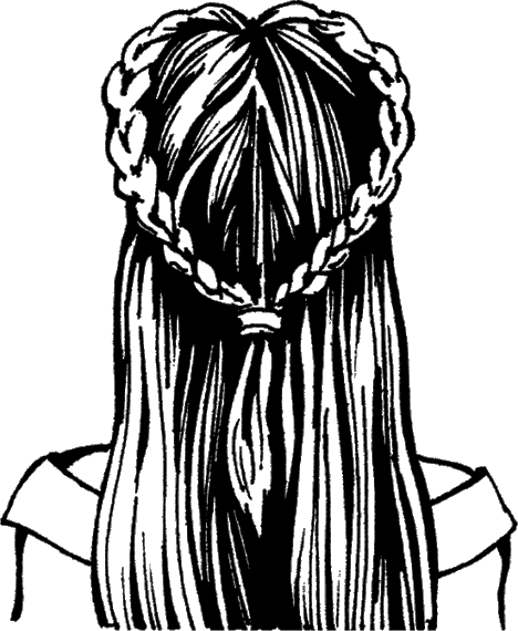 3. Дойдя до уха, плавно направьте плетение к шее, чтобы коса образовывала контур половинки сердца. Чтобы придать косе нужные очертания, по необходимости увеличивайте или уменьшайте длину дополнительных прядей. 4. Доплетите косу до шеи и закрепите резиночкой (рис. 109).