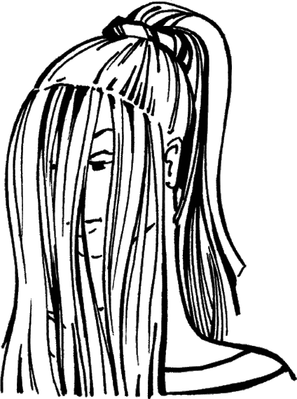 1. Зачесать волосы на затылок, собрать их в хвост и зафиксировать резинкой.