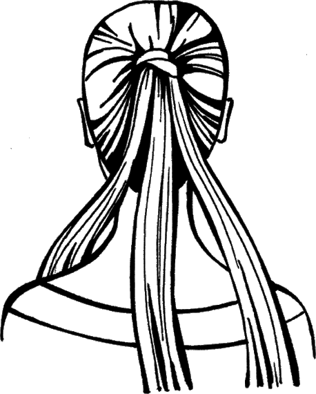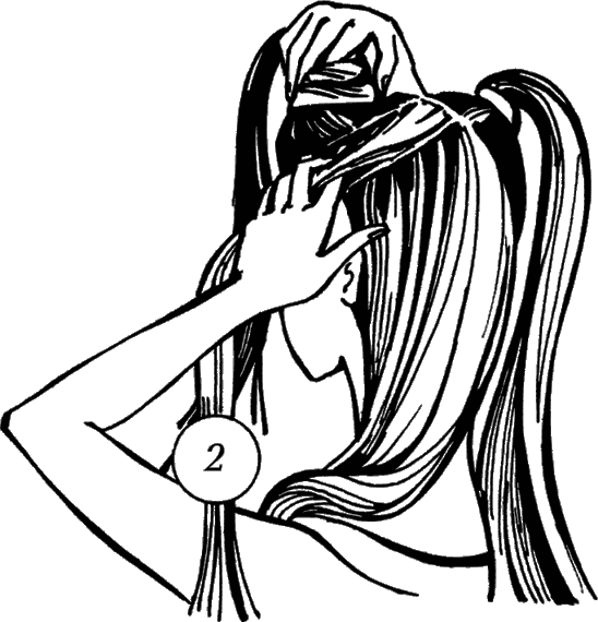 3. Завершите плетение классической косой. Закрепите ее конец резинкой и спрячьте его под «конским хвостом». 4. Распустите хвост и расчешите волосы (рис. 125).