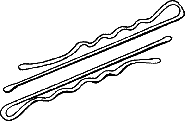 1. Невидимки. Эта сложенная пополам проволочка — незаменимый аксессуар для создания идеальной прически. Невидимками закрепляют все ненужные, торчащие кончики волос. Ими фиксируют отдельные пряди и косы (рис. 15).