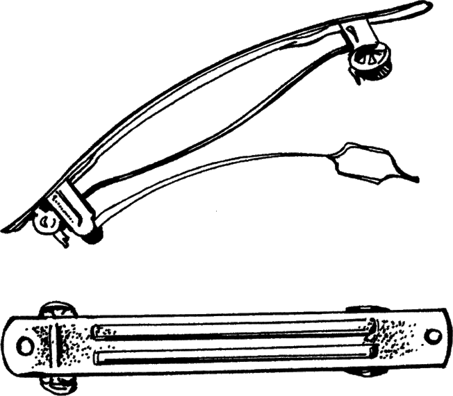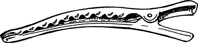 2. «Крокодильчики». Этот вид заколок соперничает по популярности с невидимками. «Крокодильчики» представляют собой автоматический механизм: две пластины, с одной стороны соединенные гвоздиком и пружинкой (рис. 16).