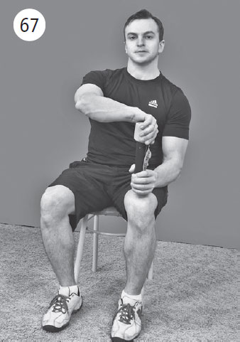 Исходное положение – сидя на стуле. Больная рука согнута в локтевом суставе под прямым углом, предплечье упирается в бедро, в кулаке зажат длинный предмет, например ложка.