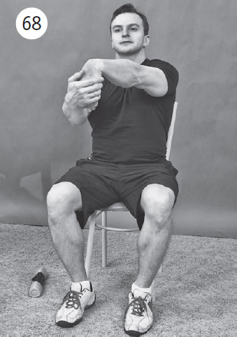 Фаза растяжения: выпрямляете больную руку полностью вперед, прямая кисть согнута в лучезапястном суставе, пальцы направлены вниз. Здоровой рукой обхватываете эту кисть и тянете ее на себя, одновременно полностью разгибая больную руку в локтевом суставе. Вы ощущаете растяжение мышц в наружной области локтевого сустава. Растягивать мышцы в течение 10–20 секунд. Повторить 1–3 раза. Выполнить упражнение для противоположной руки.