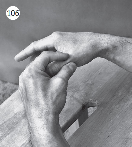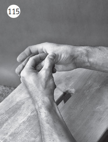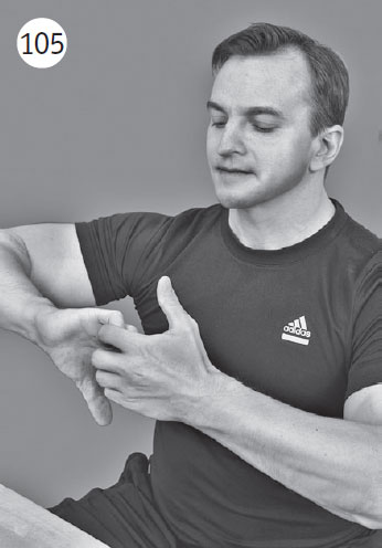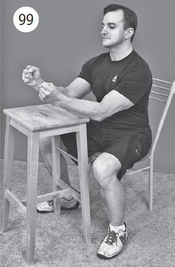 Фаза растяжения: выполняете растяжение мышц каждой руки как в упражнении «Сгибаем кисть» из раздела упражнений для локтевого сустава, см. ил. 69–72).