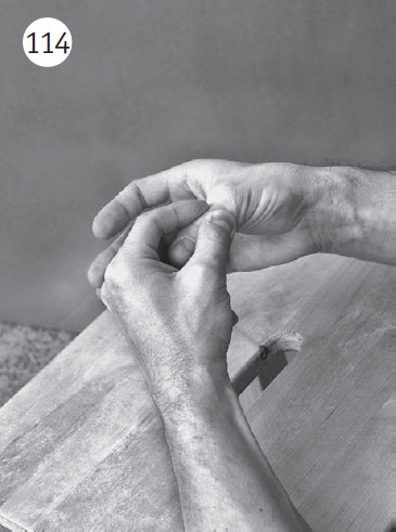 Исходное положение – сидя или стоя. Большой палец правой руки зажимается у верхушки пальца между большим, указательным и средними пальцами левой руки.