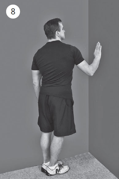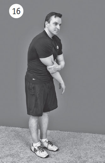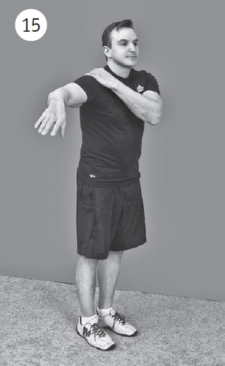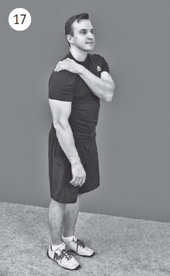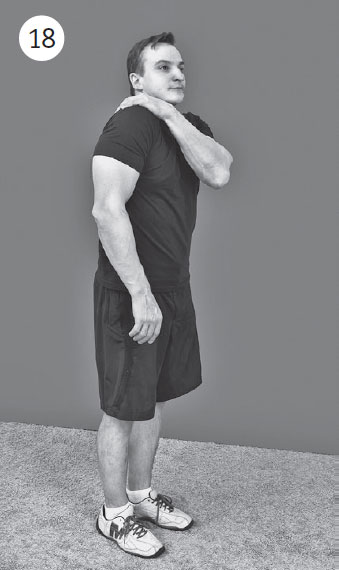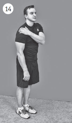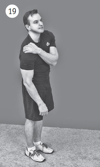 Фаза растяжения: теперь расслабьте правую руку, а левой кистью давите на плечо вниз в течение 10–20 секунд, растягивая мышцы, которые перед этим напрягались. Повторить 1–3 раза. Выполнить упражнение для другого плеча.
