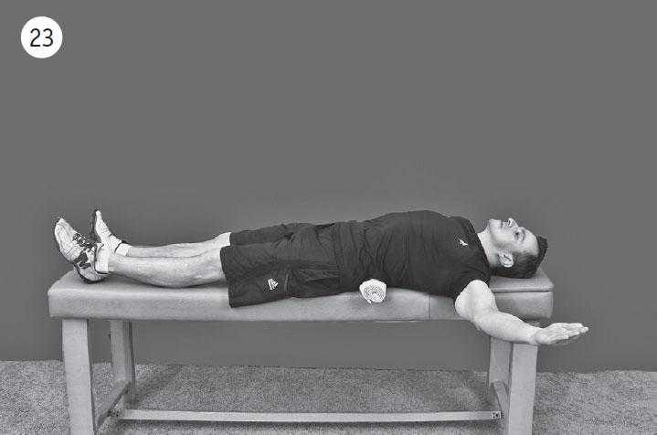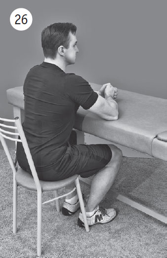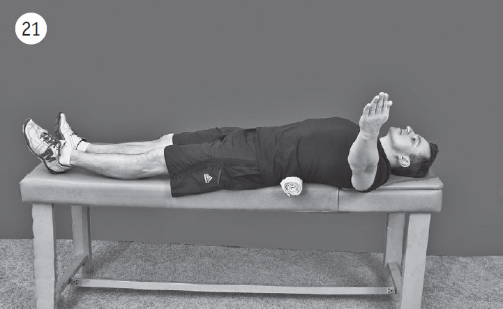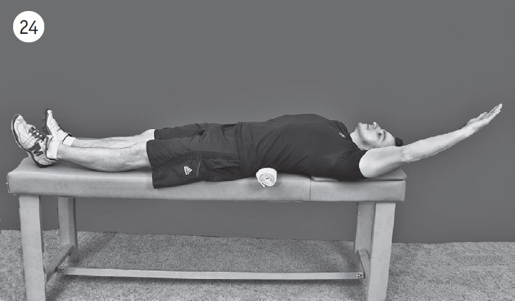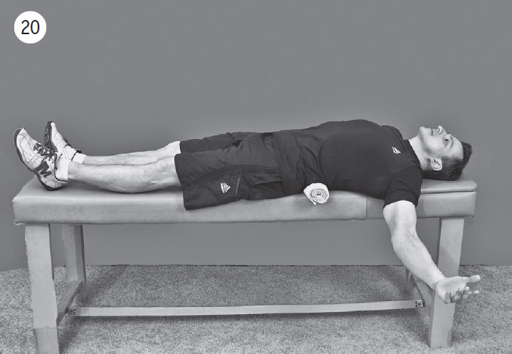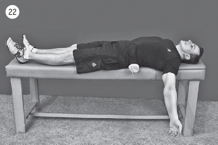 Исходное положение – прежнее. Правое плечо свободно свисает с кушетки.