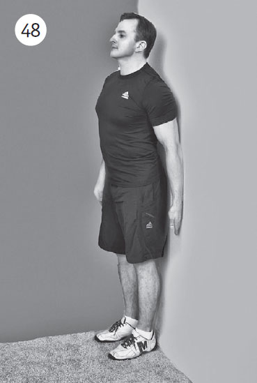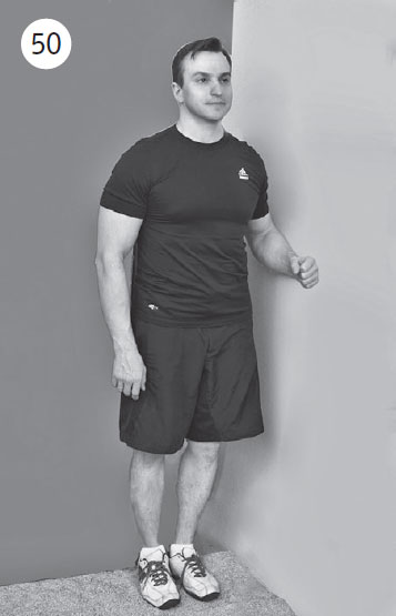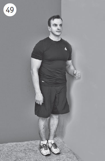 Исходное положение – стоя лицом к выступу стены или шкафа. Больная рука согнута в локтевом суставе под прямым углом, располагается снаружи выступа. Локтевой сустав и ладонь касаются стены.