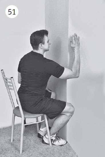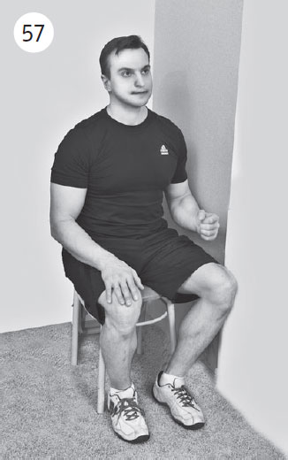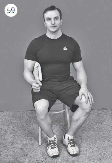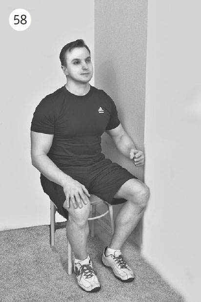 Исходное положение – сидя на стуле, больным плечом развернуты к стене или спинке второго стула. Больная рука согнута в локтевом суставе под прямым углом.
