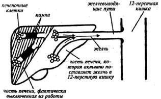 Мало того, что периодически бывает спазм желчевыводящих путей, но и образующиеся камни в желчных протоках уменьшают объём желчи, необходимый для переваривания данного количества пищи. Получается, что часть печени выключена из работы по обеспечению переваривания пищи.