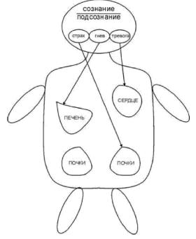 Как в кукольном спектакле, отрицательные эмоции, вытесненные в подсознание, ’’тянут” за невидимые нити, идущие во все части тела. Эти невидимые нити (нервные импульсы) заставляют тело подчиняться: в различных участках тела возникает и поддерживается постоянный спазм сосудов и повышенный тонус мышц. Ухудшается кровообращение во внутренних органах, возникают их заболевания.