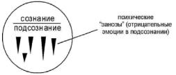 Последствия стрессов (сильных или продолжительных по времени воздействия отрицательных эмоций), последствия физических травм, операций приводят к образованию в подсознании своеобразных эмоциональных ’’заноз" или психических эмоциональных "зажимов". "Заноза" - это погрузившаяся в подсознание отрицательная эмоция (боль, страх, злость, зависть и др.). Как ёжик носит всю жизнь иголки на спине, так и в подсознании человека всю жизнь будут сидеть эти "занозы".