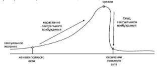 Вначале у человека появляется сексуальное желание. Сексуальное желание переходит при благоприятных условиях в сексуальное возбуждение. В процессе полового акта сексуальное возбуждение постепенно нарастает и заканчивается пиком сексуального возбуждения -оргазмом. После этого наступает резкий спад сексуального возбуждения, который проявляется расслаблением мышц всего тела, сонливостью.