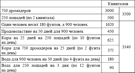 Было решено создать шесть полков верблюжьей кавалерии, по одному на каждую пустыню, возложив снабжение их продовольствием и выплату жалованья на прилегающие к ним области. Каждый полк должен был состоять из 900 человек, 750 дромадеров [21] и 250 лошадей, переносящих запас продовольствия на 50 дней. Один дромадер переносит 4 квинтала.