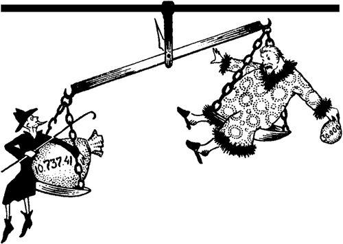 Продолжать сделку становилось положительно невыгодно: получаешь тысячу, а платишь больше. Но нарушать уговор нельзя, надо дотянуть до конца месяца. Впрочем, богач не считал себя в убытке: он хотя и уплатил больше двух с половиною тысяч, зато получил полных 18.