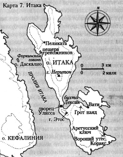 Наш «Арго» не был волшебным кораблем, так что мы не могли сравниться с феакийцами. Не было у нас, когда мы прибыли на Итаку, и предпосылок, чтобы добавить что-либо к тому, что за две тысячи лет сделали историки, археологи и гомероведы, занимаясь привязкой приключений Улисса на его родном острове. Все же мне представлялось, что исследования этих специалистов оставляют место для суждений, основанных на проведенных нами морских изысканиях, ибо итакская глава истории Улисса показывает, как география способна и подтвердить, и в чем-то поставить под сомнение картину его обители, нарисованную в «Одиссее», заключительной головоломки на арене маленького острова длиной неполных двадцать и шириной около пяти километров.