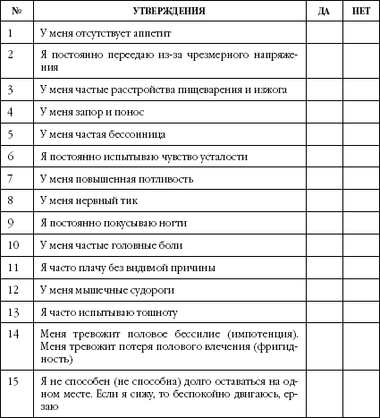 Прежде чем говорить об этом, я предлагаю вам провести самодиагностику. Определите, насколько серьезен стресс, который вы, возможно, испытываете. Ответьте на следующие утверждения «да» или «нет».