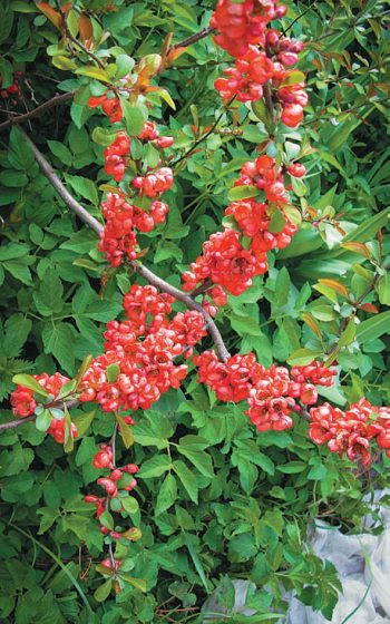 Другой вид – хеномелес японский, он высокий (до 2,5 м). Это растение нам не подходит, потому что любая айва вымерзает выше уровня снегового покрова. Лучше сажать более низкорослый хеномелес Маулея, у которого подмерзает только верхушка. Ее приходится вырезать, но остальная часть куста сохраняется.