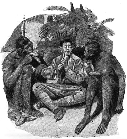 «Госпожа Звено» уселась на земле около меня и начала глазеть довольно-таки восторженным взглядом. Я и думаю себе: «Влетел, милый мой Джек Андерсон! Остается тебе извлечь из этой истории все, что возможно; значит, прежде всего следует тебе подружиться с этими «Звеньями»! — и я улыбнулся ей самым очаровательным образом: