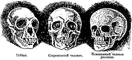 В черепе гиббона не было никакого выражения, это была совершенно глупая и бессмысленная гримаса животного. На мертвом костяке лежала печать одного дикого инстинкта. Целая пропасть разделяла обезьяний череп от черепа современного человека. У последнего уже была видна мысль. Общий облик светился разумом. В нем глядел человек в полном смысле этого слова, отражалась близкая и понятная нам жизнь.