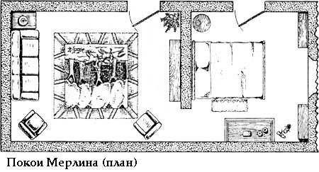 В спальне порядок, из чего можно заключить, что хозяина не было давно. Возле шкафа валяются его любимые кроссовки — память о времени, которое он провел в теневой Калифорнии. Как-то он притащил в замок машину, которую назвал портативным компьютером, но вскоре обнаружилось, что она не работает. Другой раз Мерлин собирался спускаться с вершины Колвира на дельтаплане.