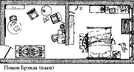 В северо-западном углу спальни со стены свешиваются две цепи. Рядом рассыпан пепел. Зачем Брэнду понадобились цепи, точно не установлено, однако почти наверняка он начал приносить человеческие жертвы. По меньшей мере кого-то истязал.