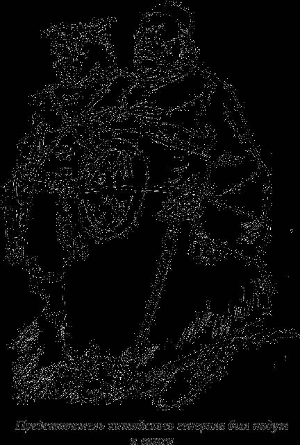 Васька отказался. Солдат хлебнул сам, спрятал бутылку и достал из кармана краюху серого хлеба. Разломив ее пополам, солдат предложил Ваське. Хлеб был сырой и невкусный, весь в крупинках махорки; Васька стал, однако, есть с удовольствием. В штаб притащились к вечеру. Китайские солдаты окружили Ваську и повели в низенький, опутанный колючей проволокой, дом. Представитель китайского генерала -- некий чин в шелковом халате -- был надут и важен. Русский офицер с одутловатым лицом казался его подчиненным.