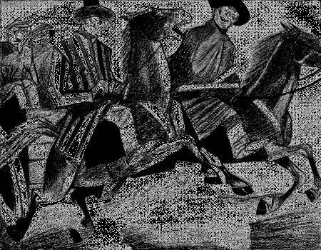 – - Шшшшто такой? -- кричит профессор, треснувшись с размаху об землю. Но уже соскочившие с седел люди в остроконечных шапках толпятся кругом, размахивают руками и бормочут на непонятном языке. Френкель охает и ругается по ту сторону свороченной в канаву повозки: