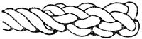 Для того чтобы один трос пропустить в блок вместо другого, два троса можно временно соединить концами (рис. 28). Соединение выполняют зигзагообразными стежками нити, пробивая ее под пряди тросов. Это лучший способ поднять флаглинь с помощью старого. На парусниках всегда таким образом заменяют старый бегучий такелаж новым, если не надо изменять неправление его проводки. Если нужно пропустить в блок стальной трос, то лучше это делать с помощью бензеля. Небольшим длинным лоскутом холста или другим материалом оборачивают оба конца. После того как бензель пройдет через блок, ткань бензеля разрезают между концами тросов и старый трос освобождается.