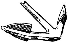 Так делали якоря сто лет назад. Адский труд! Такая работа действительно требовала «великого прилежания и крайнего искусства», если выражаться словами петровского «Регламента». И якорные мастера Урала были виртуозами своего дела. За сухим, но точным изложением Д. Леонтьева можно ощутить все напряжение очень долгого и тяжелого физического труда в задымленных кузницах у пышащих жаром пудлинговых печей и горнов. Смело можно утверждать: в номенклатуре кузнечной продукции прошлого века нет вещи, которую бы изготавливали с таким усердием и вниманием, как якорь. На рис. 47 показана форма рогов и лап уральского якоря.