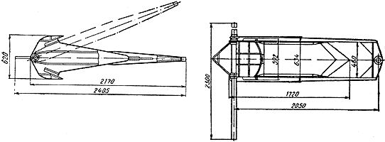 Изготовили якорь Горбунова весом 220 кг, (рис. 162). На рыхлом песке его держащая сила составила 38,5 веса (8,5 г), а на суглинке — более 45 весов (более 10 т). При изменении угла тяги в горизонтальной плоскости на 30° якорь, не выходя из грунта, говорачивался в сторону тяги, сохраняя устойчивую держащую силу.