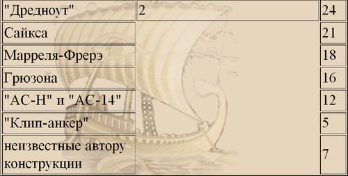 Итак, на 1000 якорей приходится всего 174 якоря Холла и 218 якорей Байерса — конструкция, о которой едва ли есть хотя бы упоминание в отечественной морской литературе.